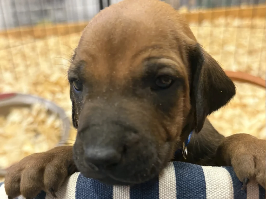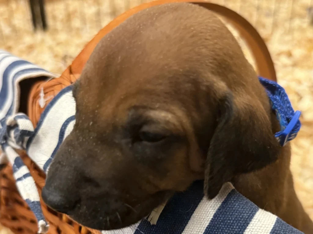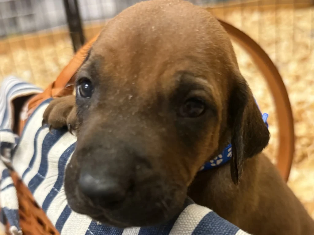 Light Blue, a vibrant and intelligent male Rhodesian Ridgeback puppy, is eager to become part of a loving family.