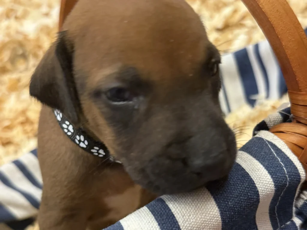 Red is a purebred female Rhodesian Ridgeback puppy with a sweet temperament, ready to bring joy to her forever home.