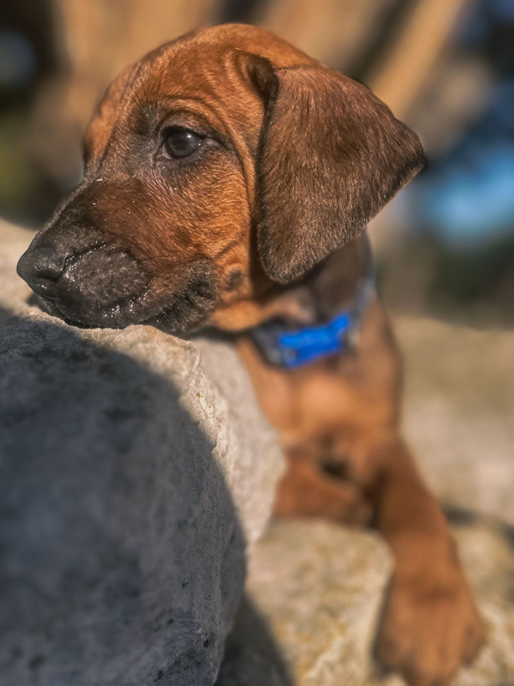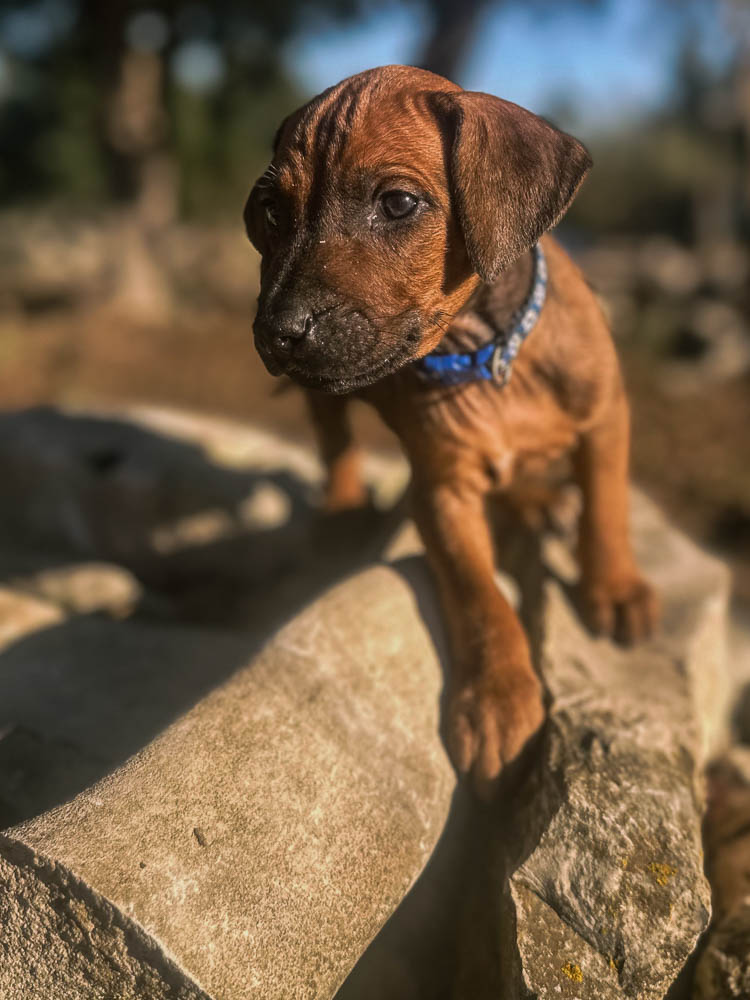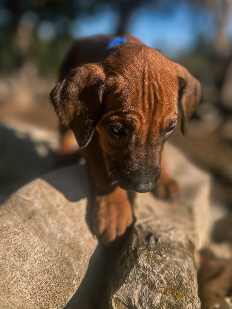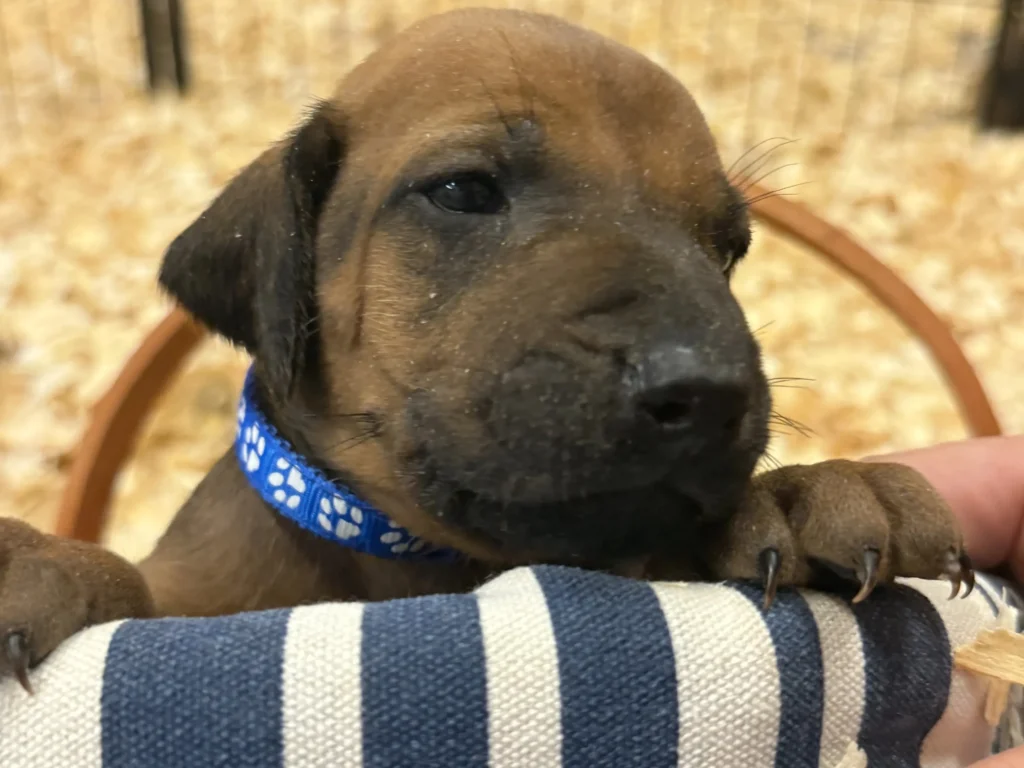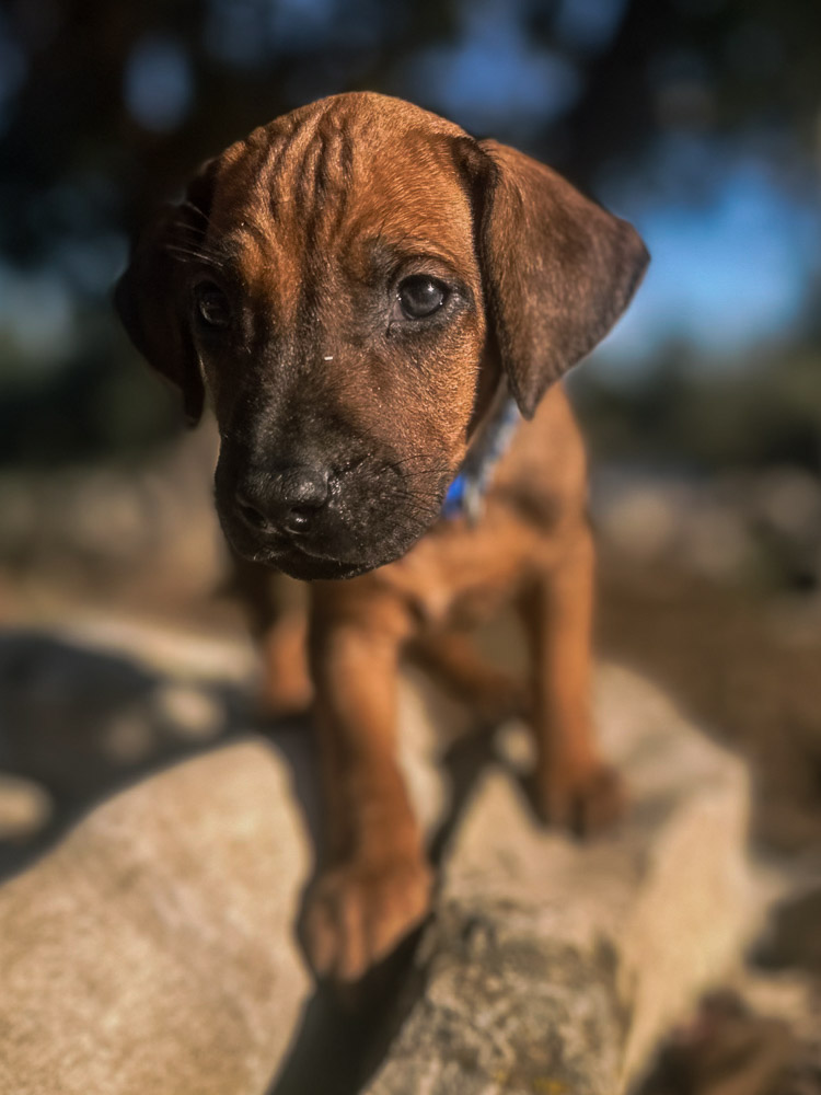 Dark Blue is a purebred male Rhodesian Ridgeback puppy, bred for health, intelligence, and loyalty.