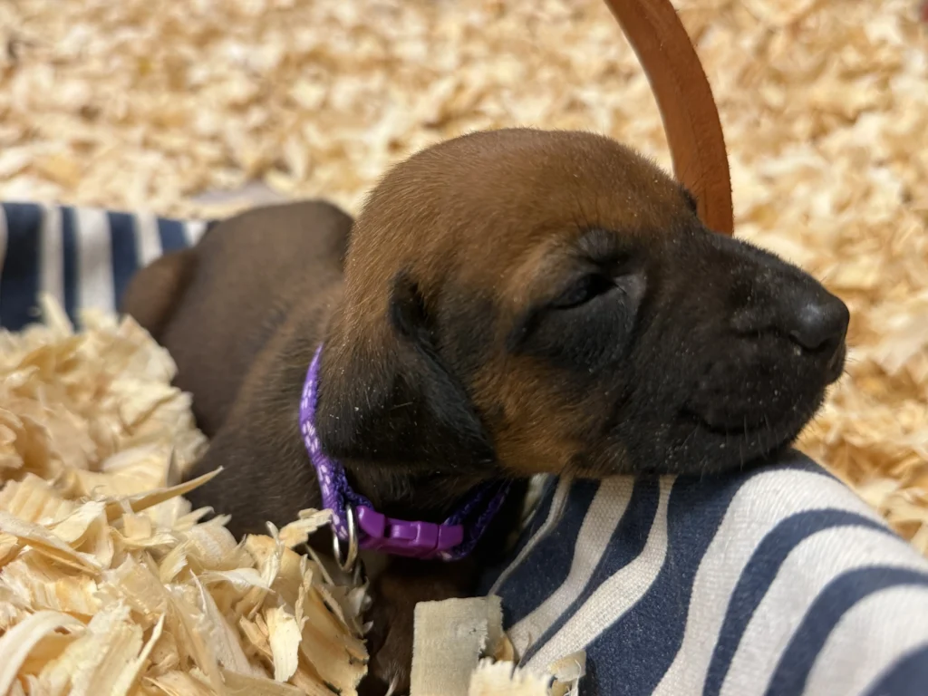 Meet light purple, a playful and loyal female Rhodesian Ridgeback puppy available now, perfect for families seeking a loving companion.