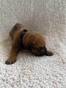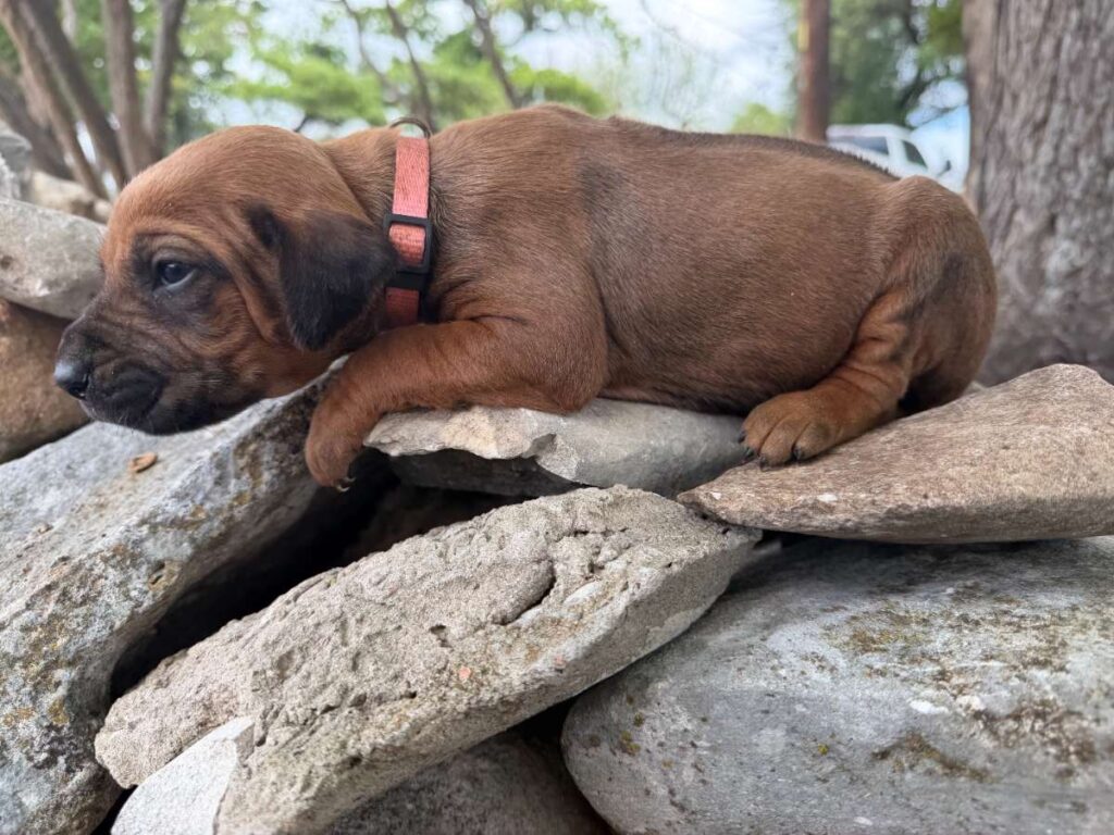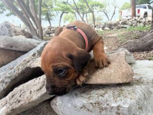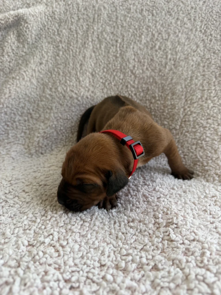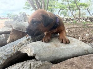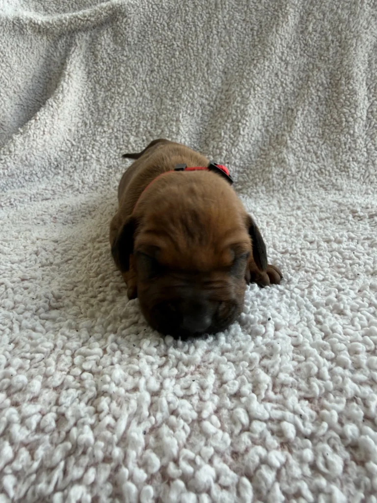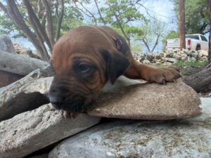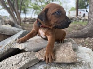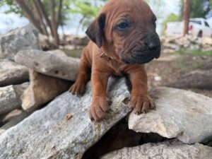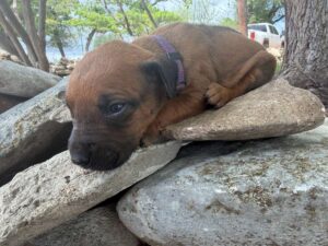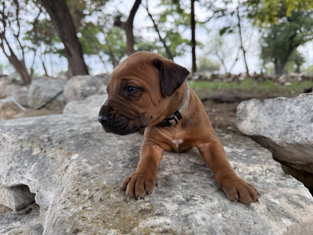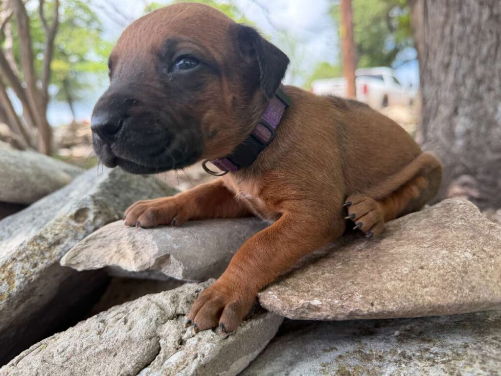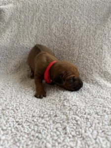 Red is a purebred female Rhodesian Ridgeback puppy with a sweet temperament, ready to bring joy to her forever home.