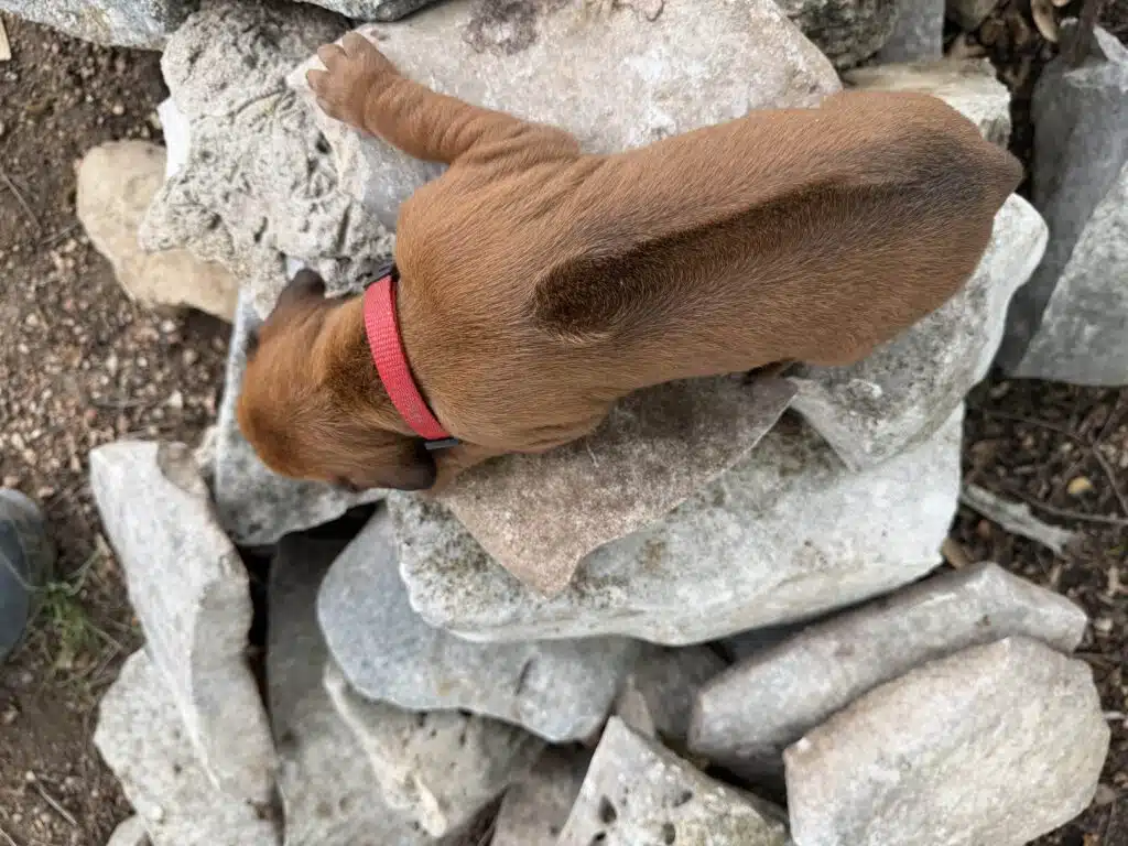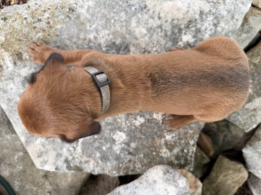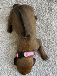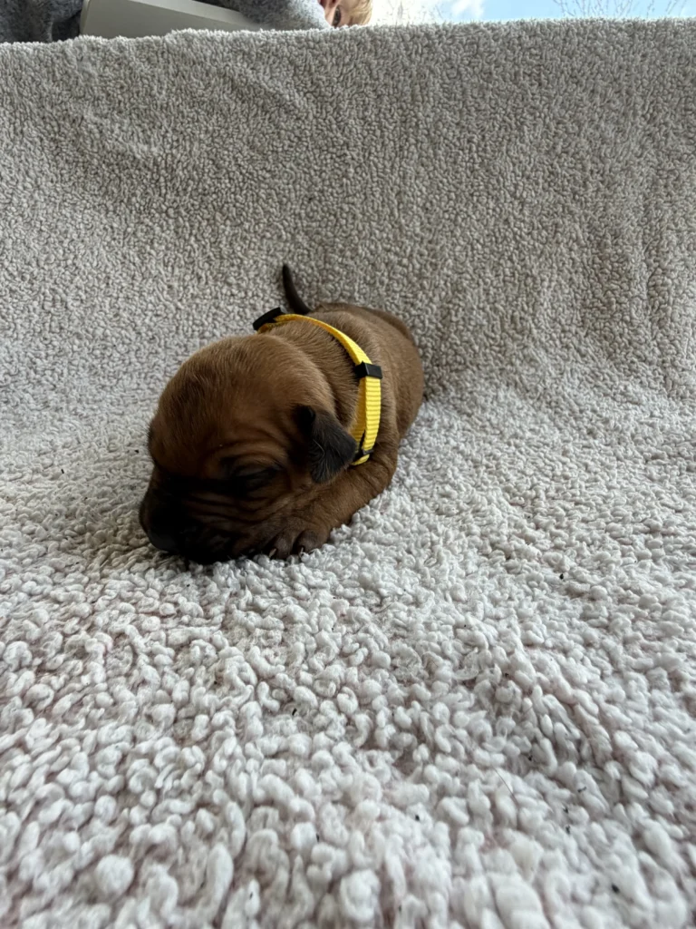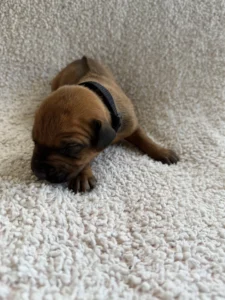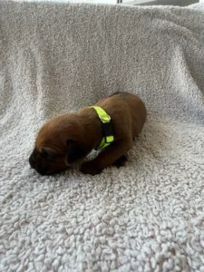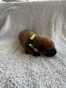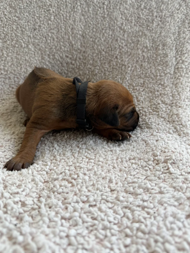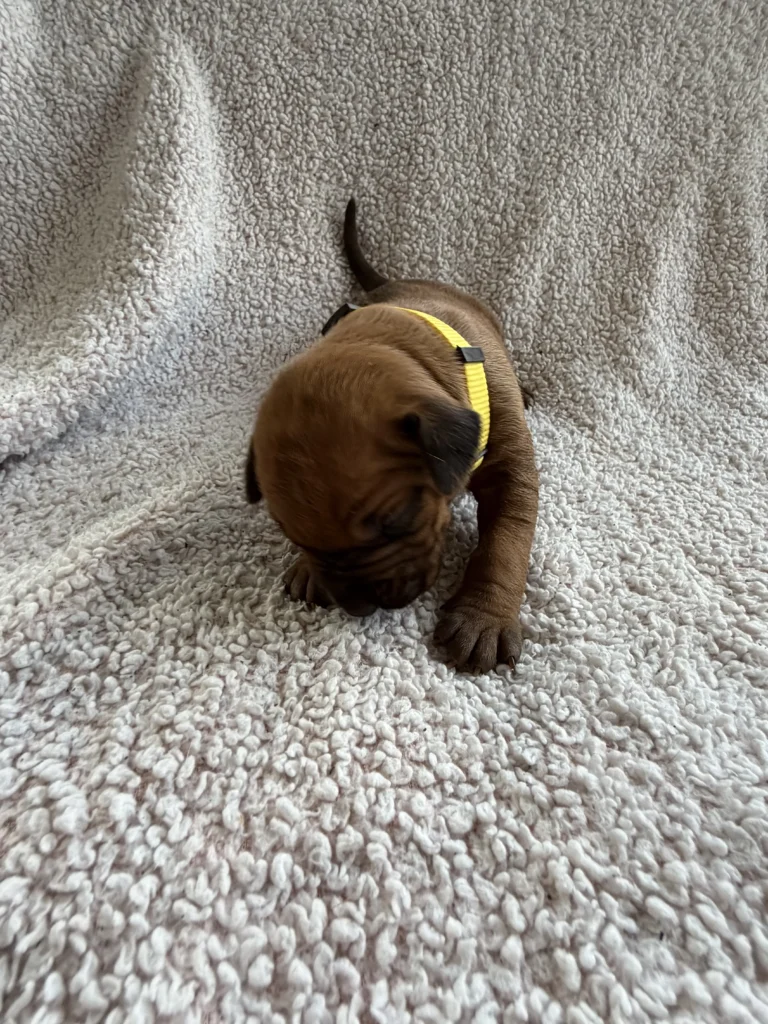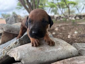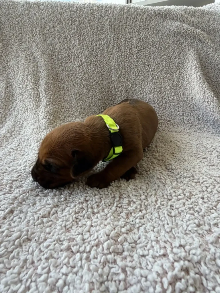Red is a purebred female Rhodesian Ridgeback puppy with a sweet temperament, ready to bring joy to her forever home.