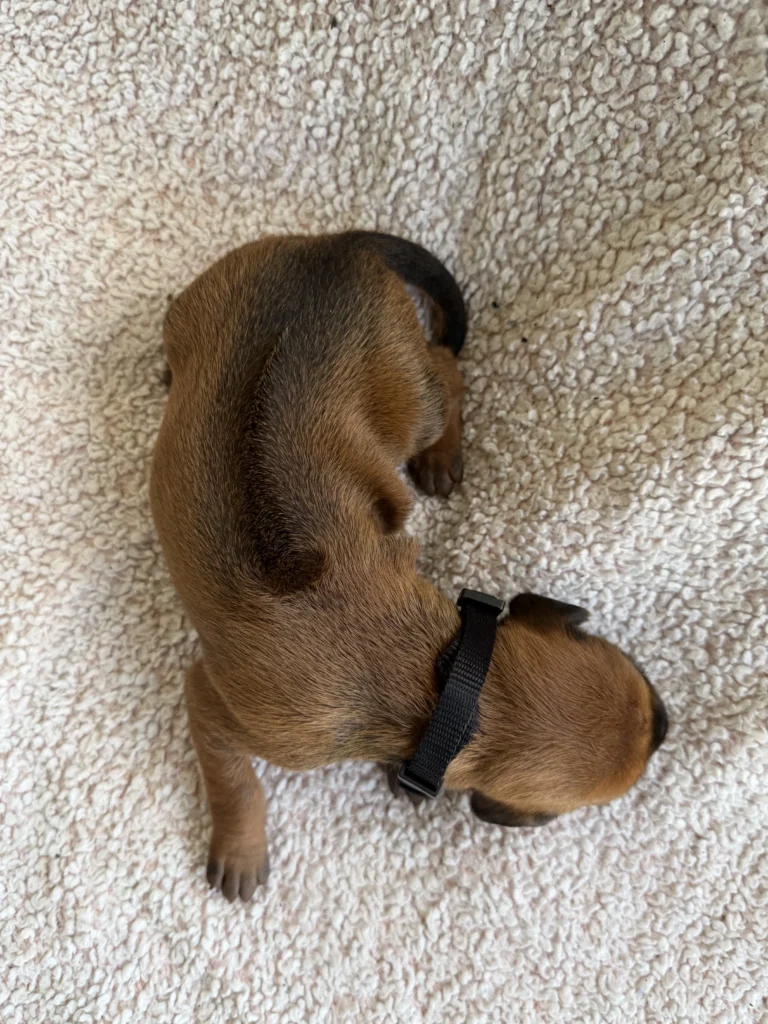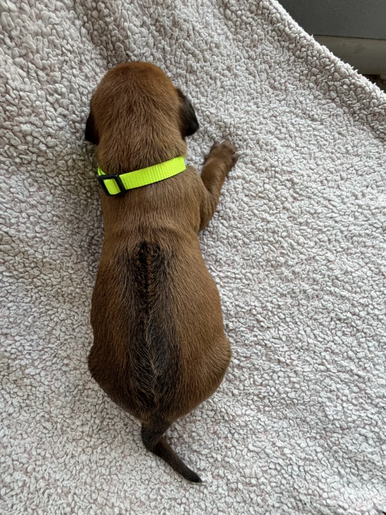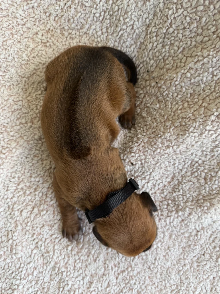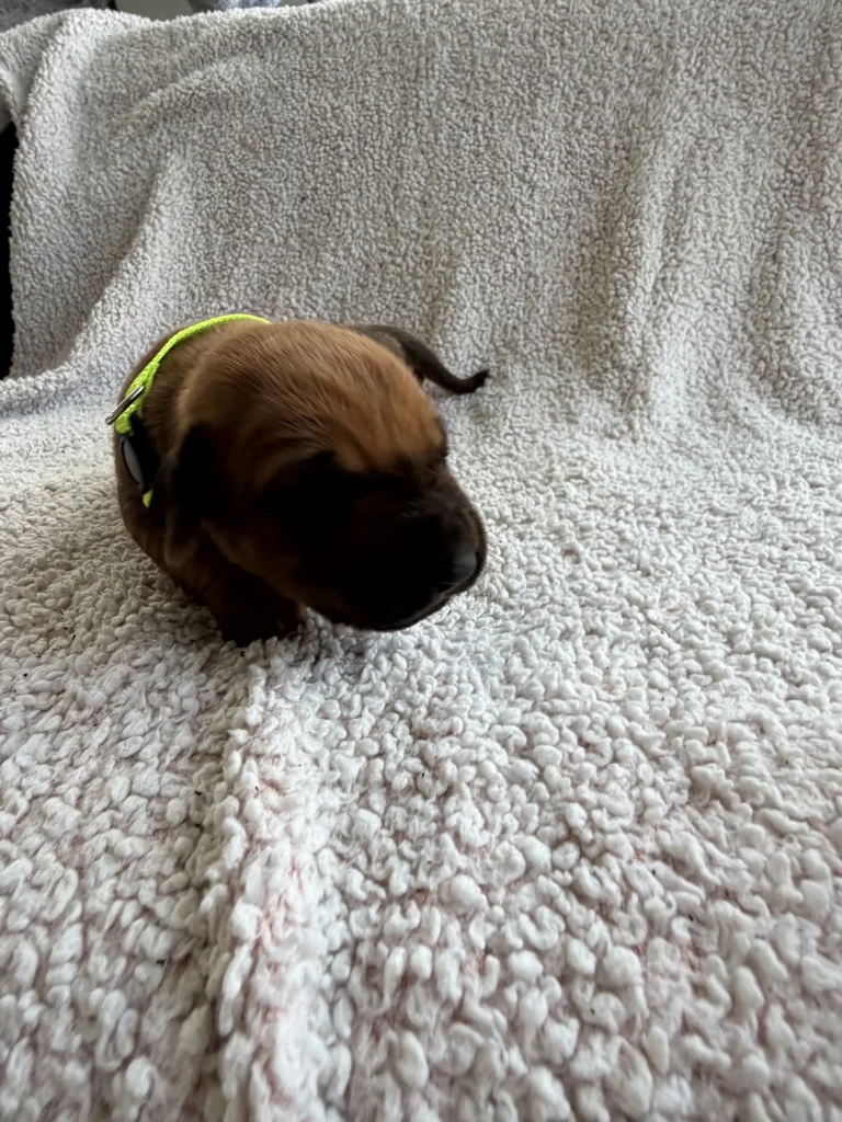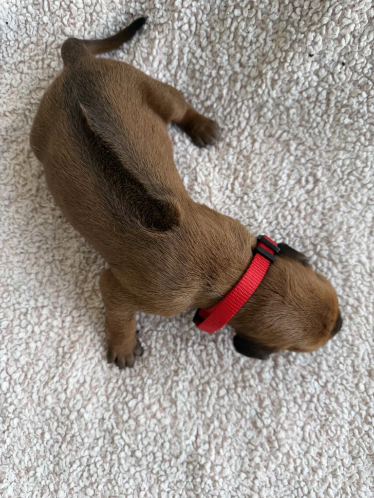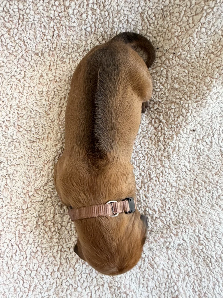 Red is a purebred female Rhodesian Ridgeback puppy with a sweet temperament, ready to bring joy to her forever home.
