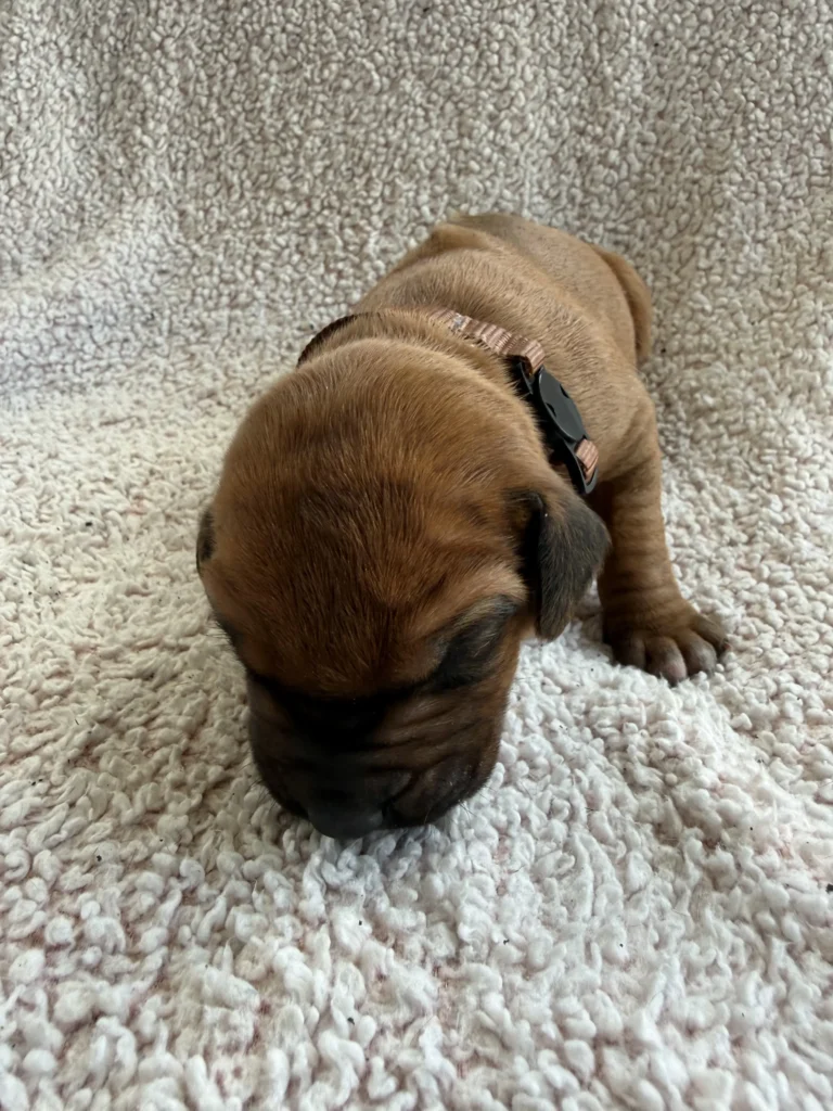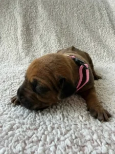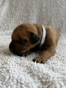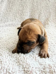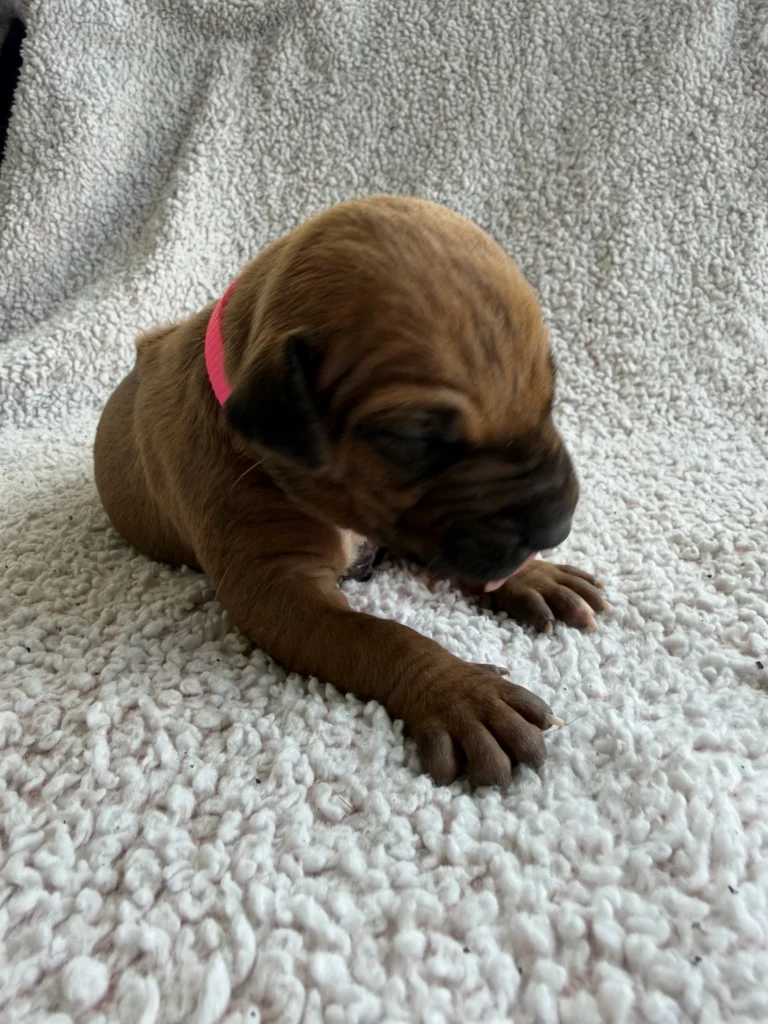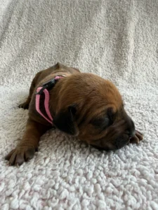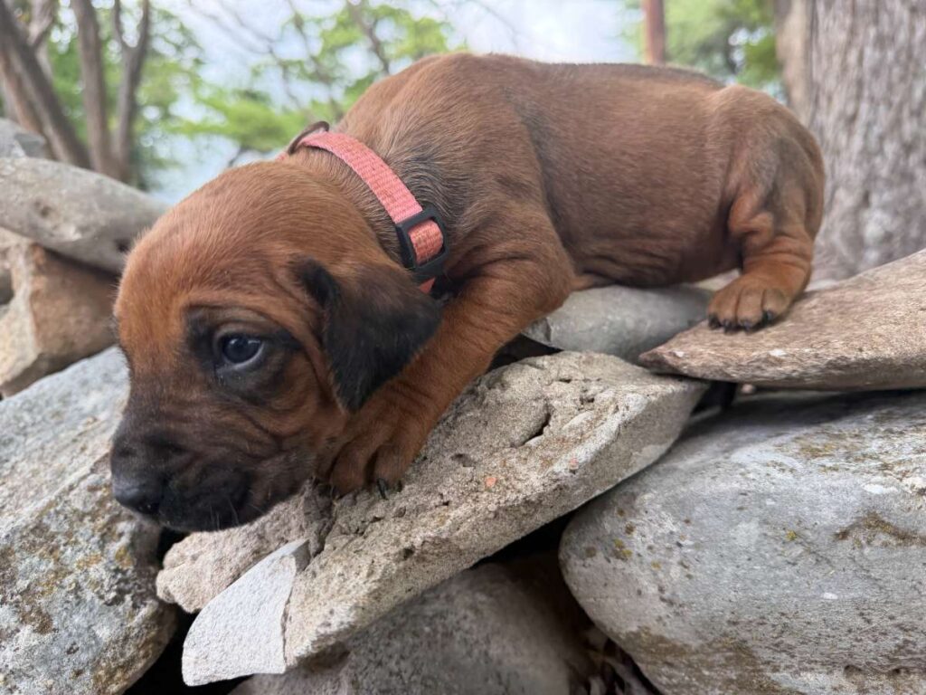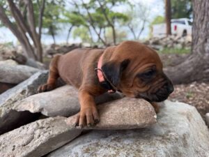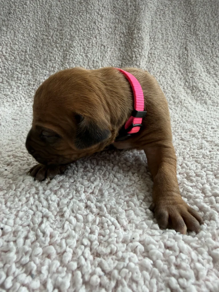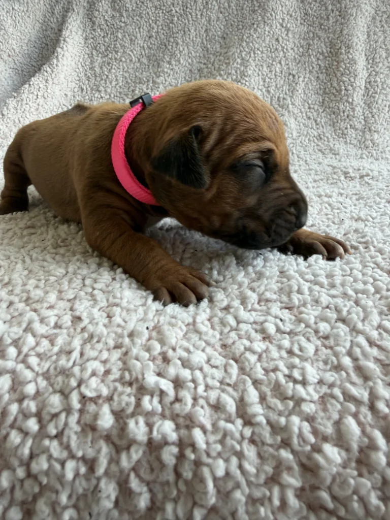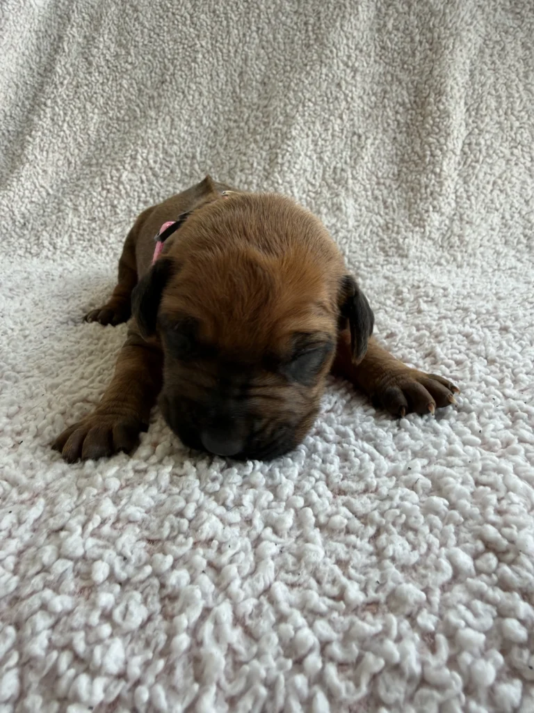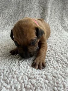 Light Pink is a female Rhodesian Ridgeback puppy with a health guarantee, raised with love and attention to every detail.