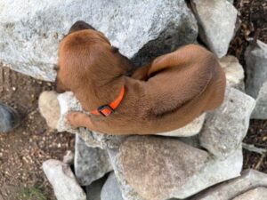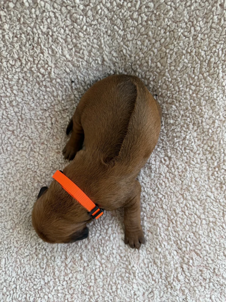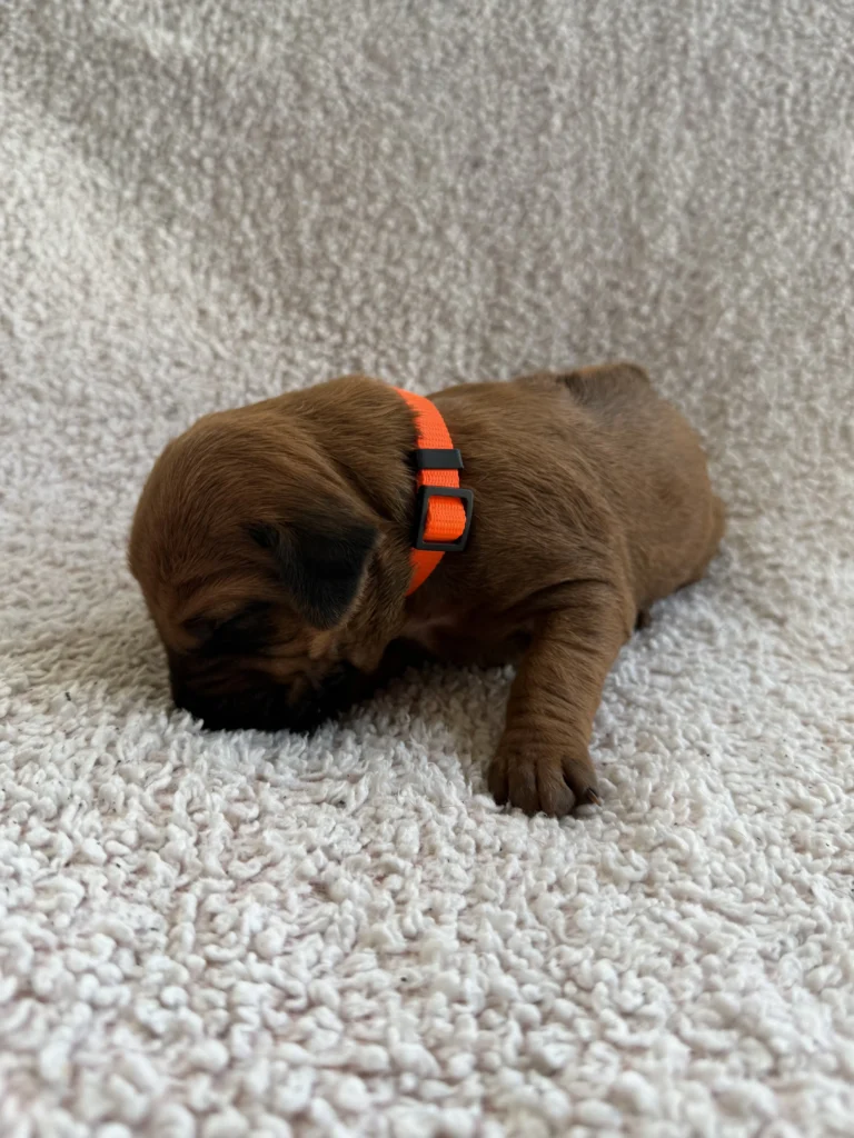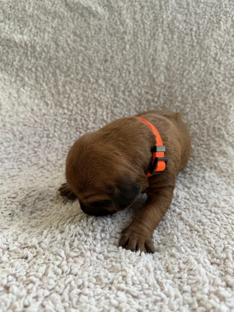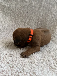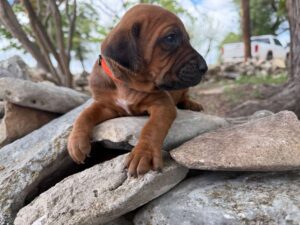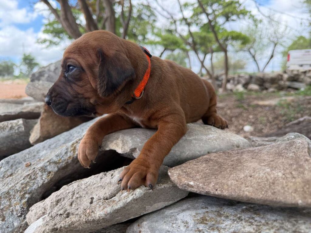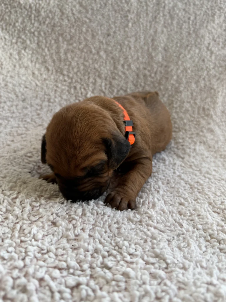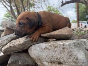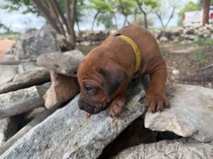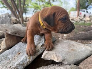 Smart and energetic, Orange is a healthy female Rhodesian Ridgeback puppy bred for quality and care.