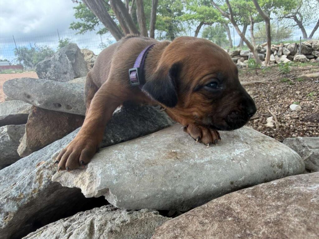 Purple is a purebred male Rhodesian Ridgeback puppy, bred for health, intelligence, and loyalty.