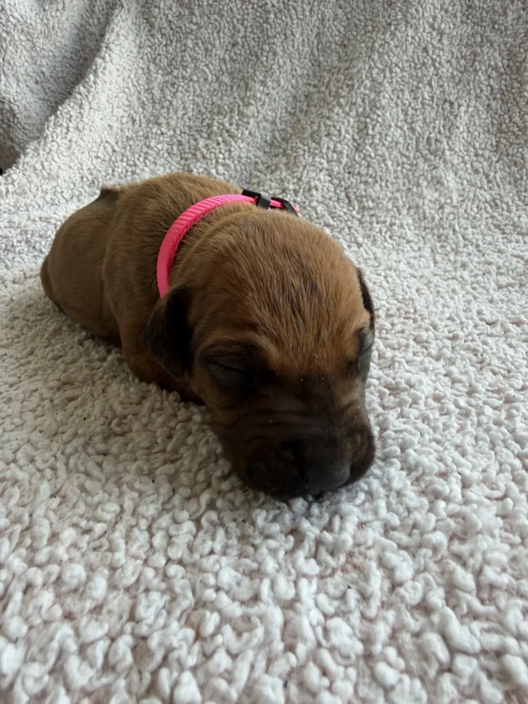 Meet Pink, a playful and loyal female Rhodesian Ridgeback puppy available now, perfect for families seeking a loving companion.